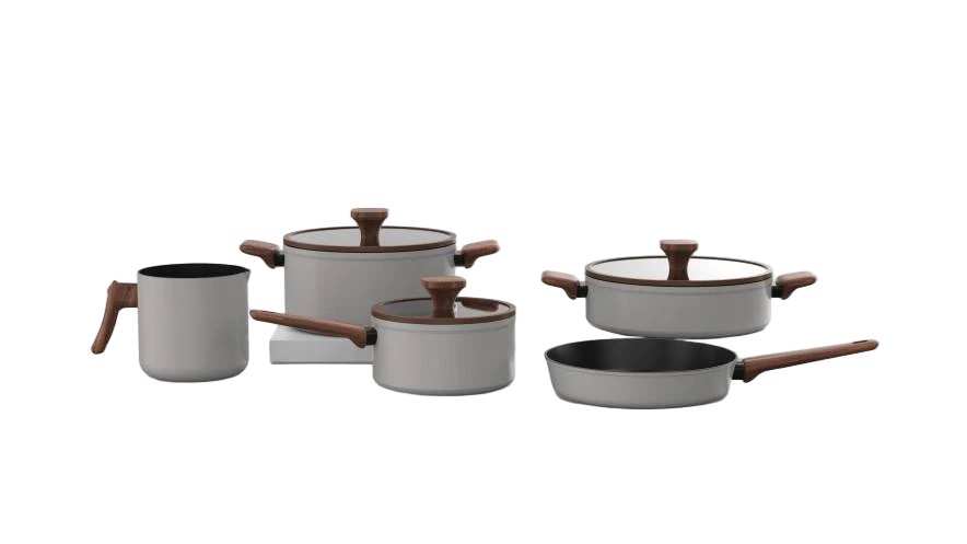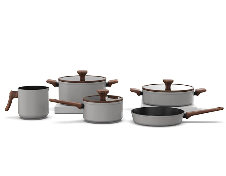 The combination of premium gray and black exudes an elegant modernity in the pots and pans collection. The pan body is smooth and delicate, understated and luxurious. The lacquered wood-grain handles are warm and comfortable to hold in your hands. Every time you cook, the natural texture of the handles complements the simple design of the pots and pans, creating a harmonious atmosphere in the kitchen. Whether sauting or braising, you will feel a warm balance, as if each dish contains the flavor of home, bringing endless comfort!
